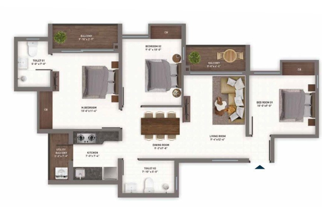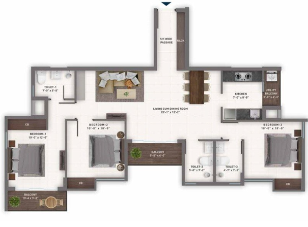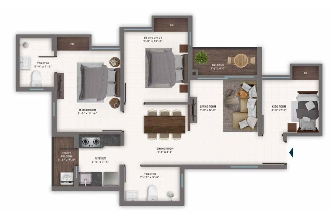 3 BHK691Sq.Ft-977Sq.ft55L-82L