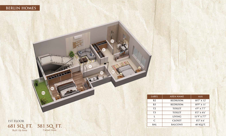 3 BHK1450Sq.Ft1.05Cr