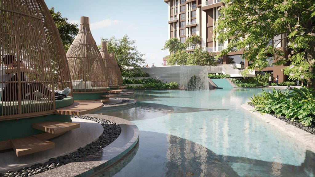 The calm, green spaces of Sanctuary are a successful example of urban forestation and a guiding factor of its design. From the minute you enter, you are transported to a haven of sheer bliss. Lush greens, diverse butterflies, hundreds of trees and tropical flowers interact with the open spaces throughout. Resulting in cleaner air, a reduction of CO2 emissions and a higher chance of spotting a rare birdy.