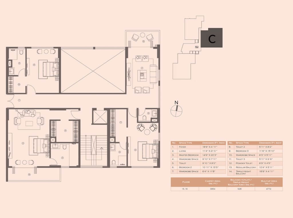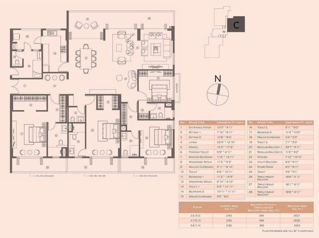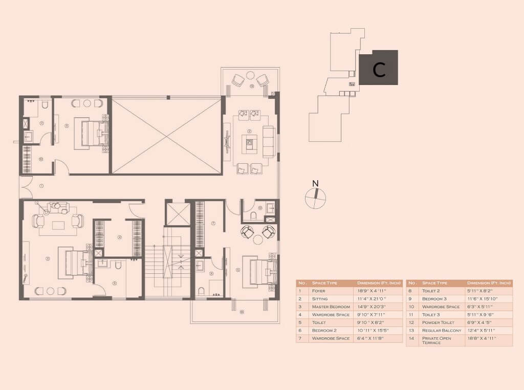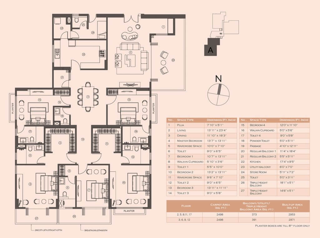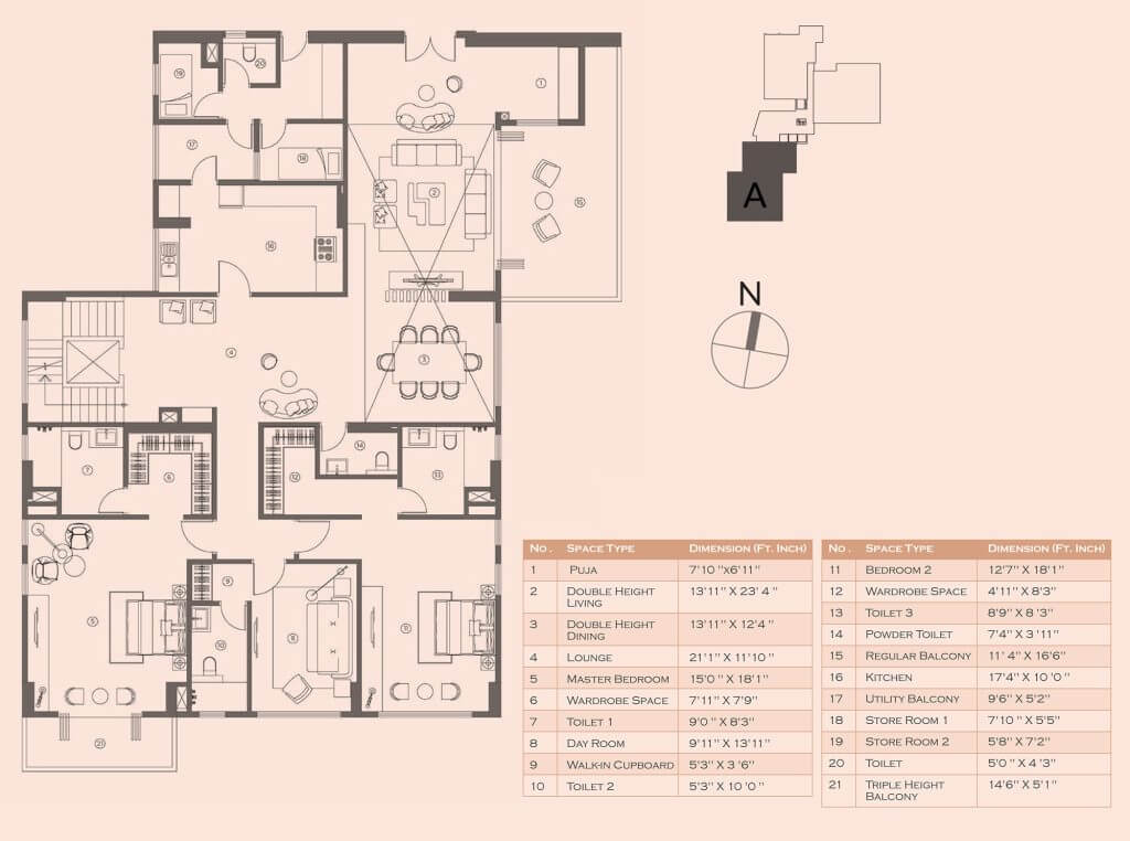 4 BHK3169Sq.Ft-3705Sq.Ft3.80Cr-4.45Cr